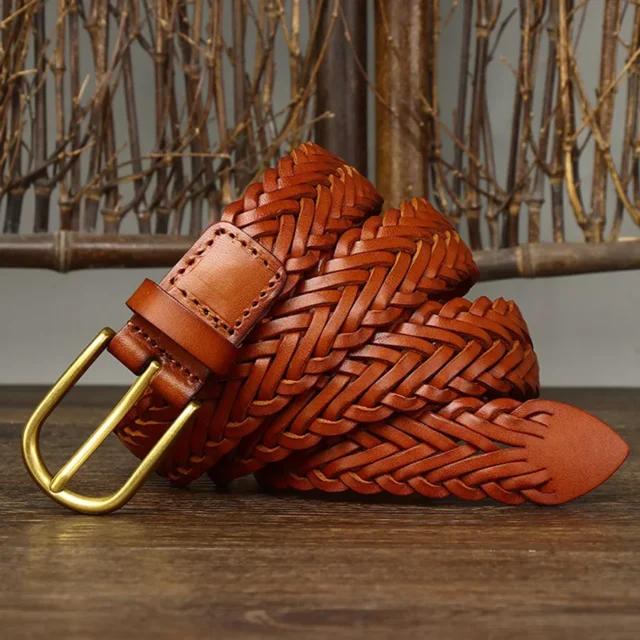 3CM Unisex Genuine Leather Woven Belt – Breathable, Stylish, Durable