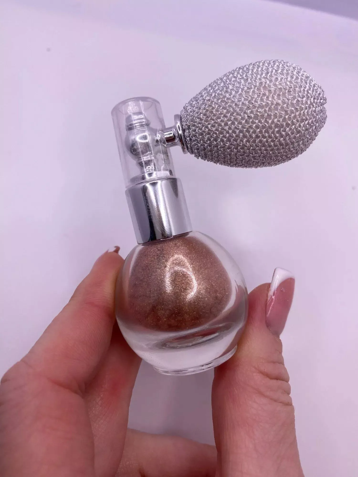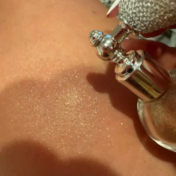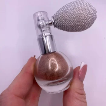 What sets our Shimmer & Shine Highlighter Powder Spray apart is its unique blend of glitter particles. The three different sizes create a multidimensional sparkle, making you look and feel like you’re covered in diamonds. It’s not just makeup; it’s a way to express your most glamorous self.
