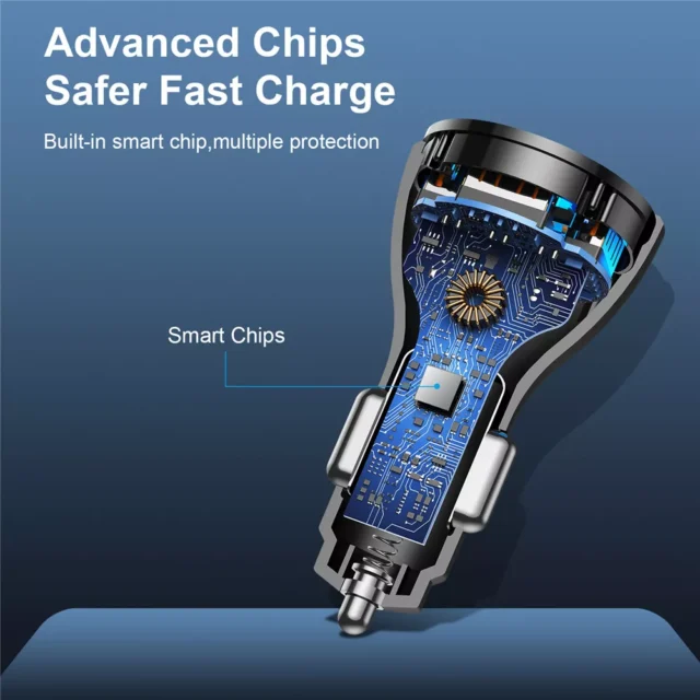 This powerful and compact car charger is designed to make charging effortless and efficient while you’re on the road. Equipped with a smart chip for added safety, it prevents overheating and overcharging, ensuring your devices are charged efficiently and safely. The four USB ports allow you to charge multiple devices at once, making it ideal for families or individuals who rely on multiple gadgets. Its high compatibility with various charging protocols like Qualcomm Quick Charge and Huawei FCP make it a versatile choice for any smartphone or tablet user.