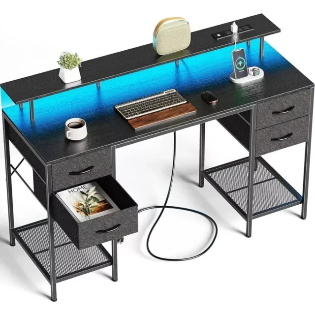 At the heart of its design are convenience and efficiency. The desk boasts four spacious fabric drawers, providing ample storage for all your office supplies and documents. Its built-in monitor stand promotes a healthy posture, essential for long working hours. The desk’s special features, such as built-in USB ports, allow for easy charging of devices, keeping your workspace clutter-free.