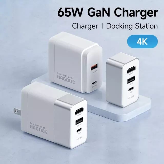 65W GaN Fast Charger and 4K HDMI Dock for Nintendo Switch, Steam Deck & Laptops
