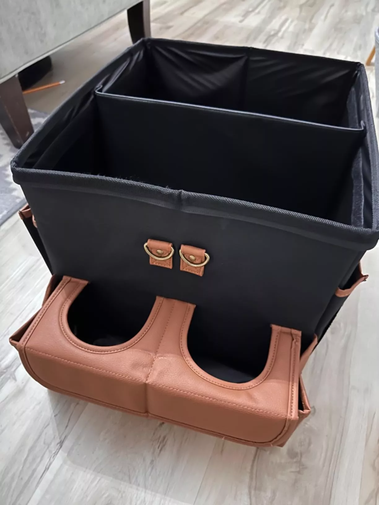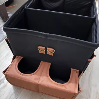 Crafted from wear-resistant 600D Oxford fabric and eco-leather, this organizer has solid walls and holds its shape perfectly even if fully loaded. The inner lining is completely waterproof to protect against any leaks.