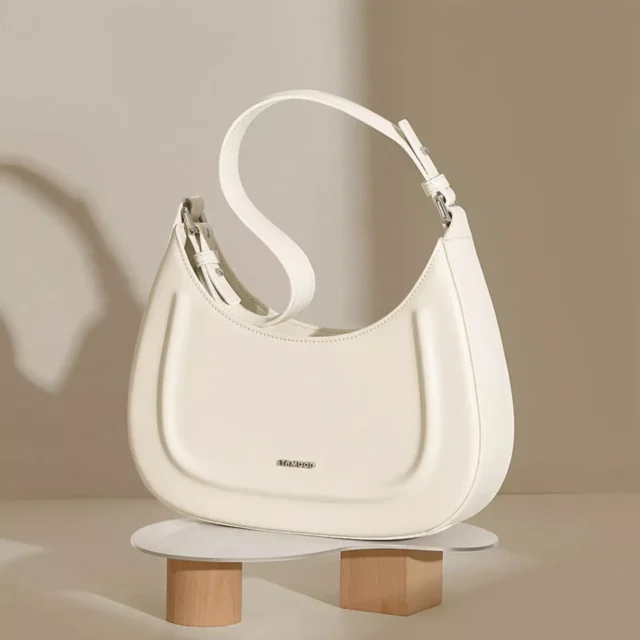 • Compact Yet Spacious: Its unique half-moon shape offers enough room for your essentials without feeling bulky.