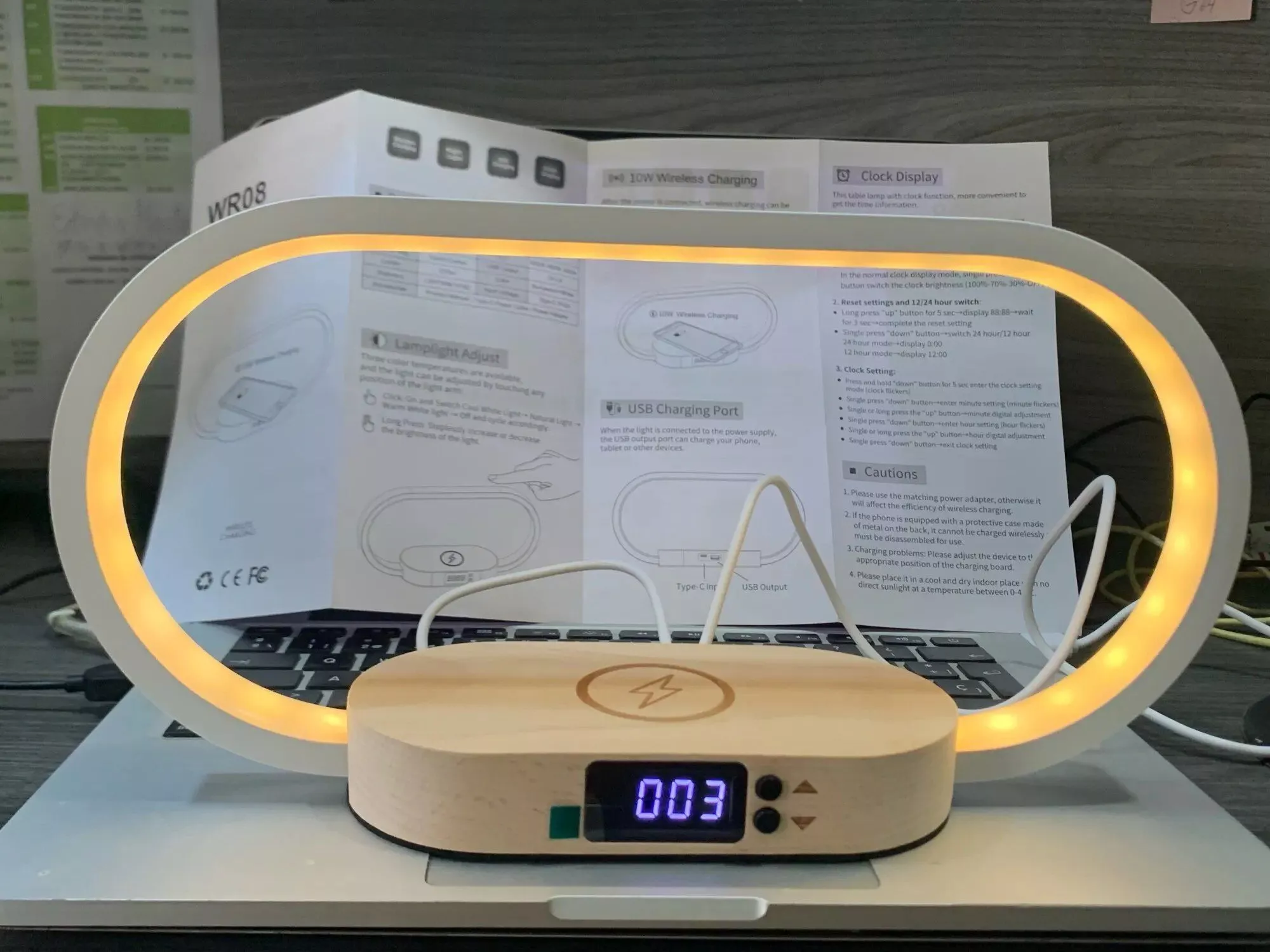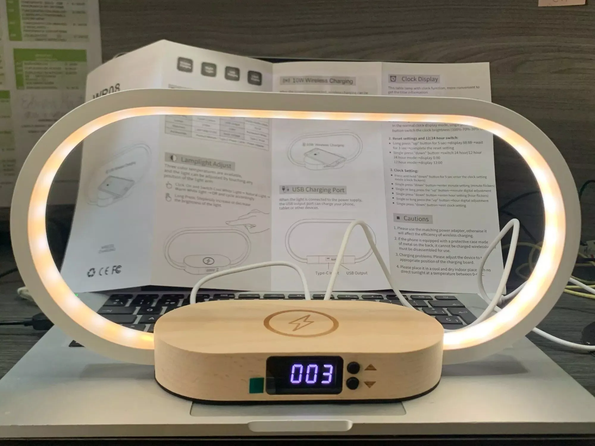 • Multifunctional Design: More than just a charger, this device also serves as a clock, night light, and LED desk lamp, catering to all your needs.
