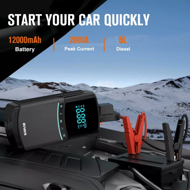 • High-Power 2000A Jump Starter – Instantly jump-starts 12V cars, trucks, motorcycles, and more.